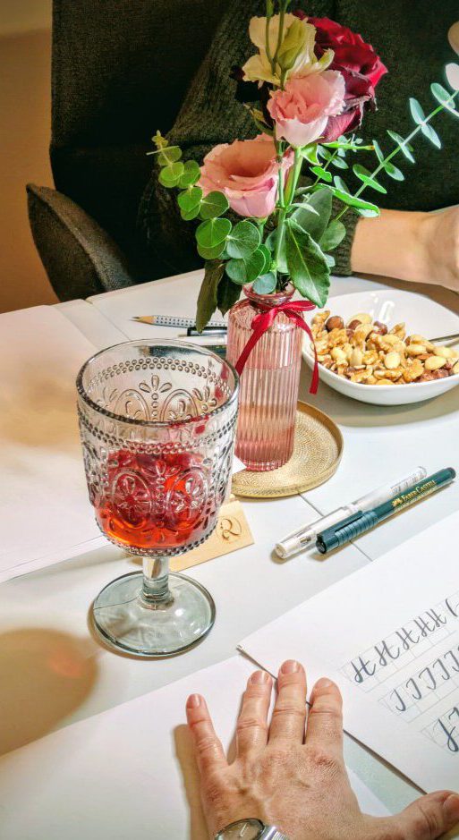 Live vor Ort profitierst Du vom direkten Über-die-Schulter-schauen, persönlichen Feedback und individueller Betreuung, da wirklich auf jede und jeden Einzelnen eingegangen werden kann. So gebe ich auch gern Tipps und Tricks aus über 9 Jahren lettering Erfahrung mit. Natürlich dürfen auch jede Art von Fragen gestellt werden, zur Technik, zum Material und und und…